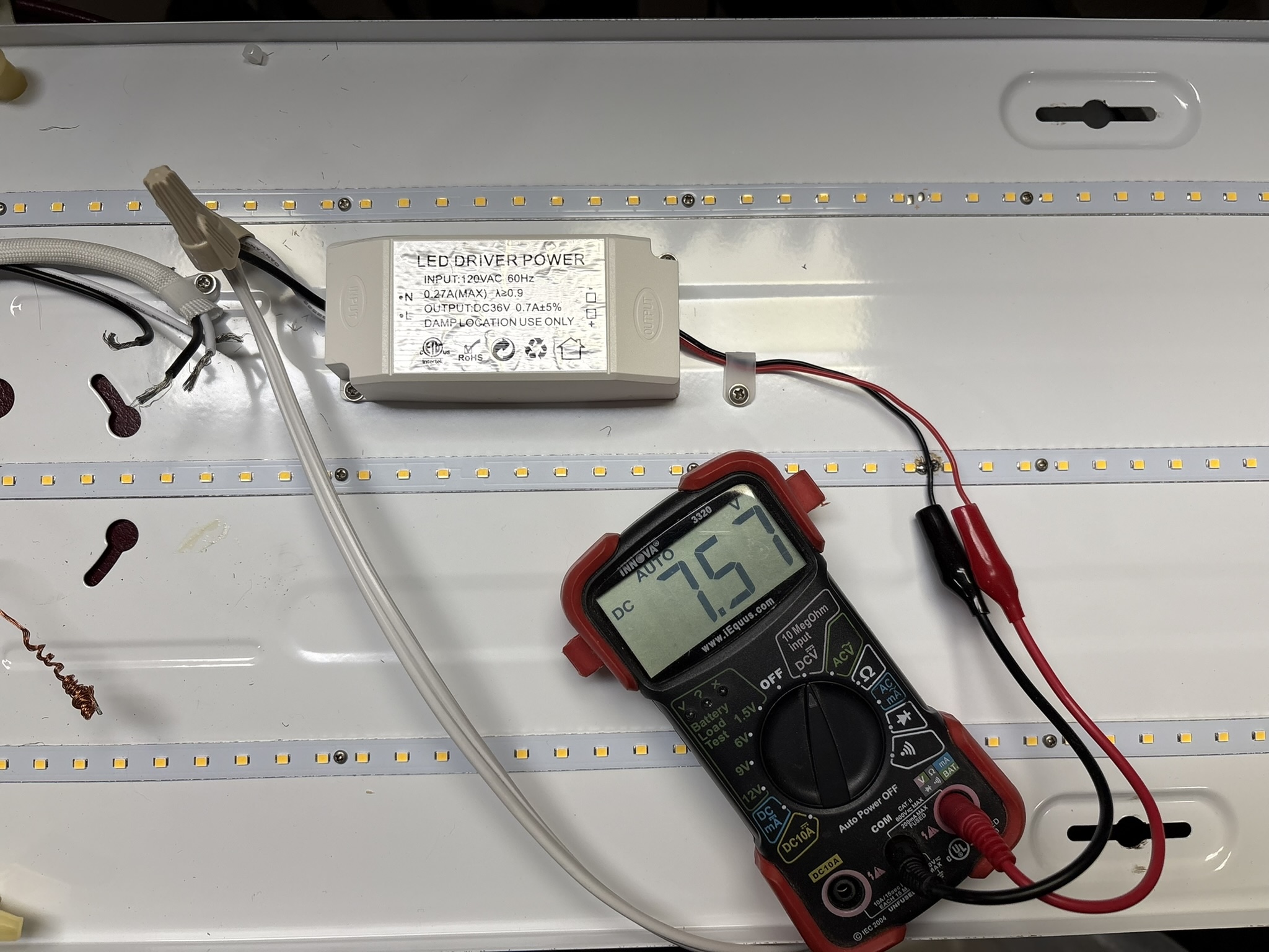 Multimeter showed the two drivers were only outputting 6-8 volts instead of 36V, so I removed them and replaced them with a new one with an acceptable power output rating.