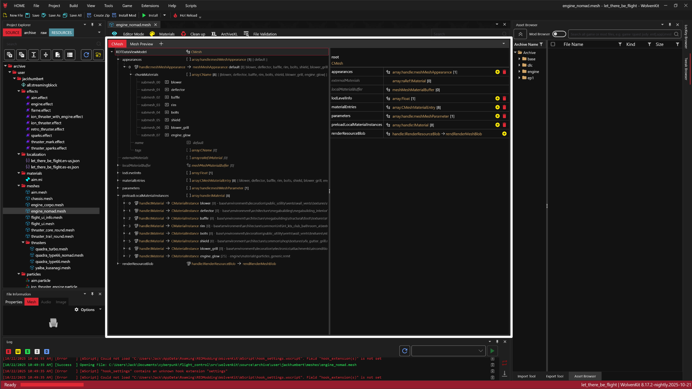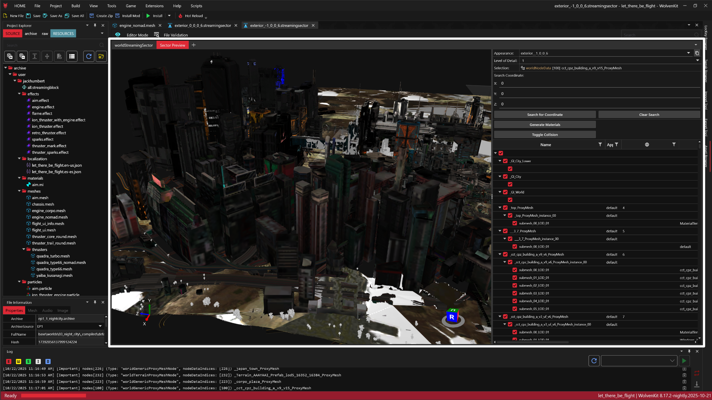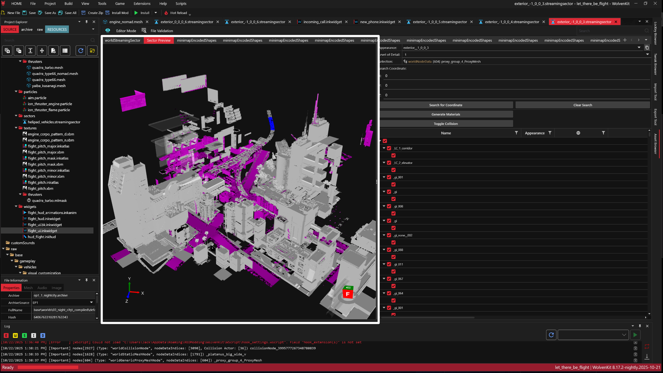 Highlighted in the white box, I created the map/level viewer that loads a particular compiled streaming sector, and list all of its children and the metadata associated with them. From that view, modders can toggle their visibility, and better understand the hierarchy. Modders can also search for in-game coorindates to more easily find a location from the game in these compiled sectors.