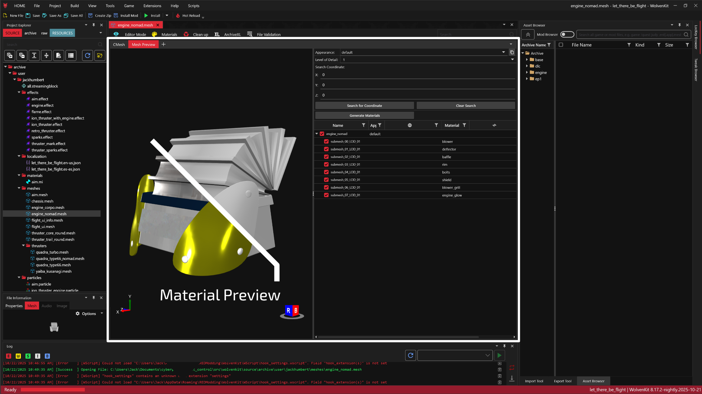 File shown is the 3D model of a custom mesh created for Let There Be Flight.